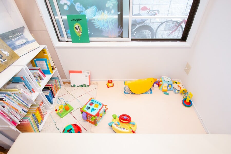お客さんは地元の親子連れが多く、キッズスペースも併設しているため子どもと接する機会が多いお店です。