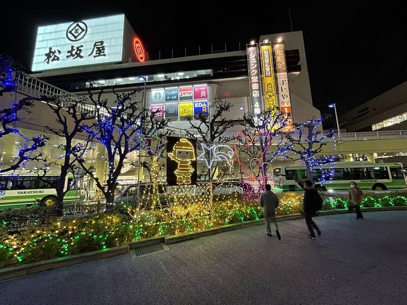 JR高槻駅前にはにたんのイルミネーションを設置!