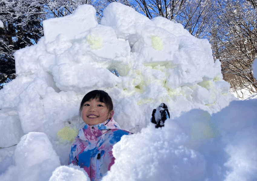 子ども達のユニークな世界観が雪を使って表現される、雪のゆうえんち。グループごとに、遊園地のアトラクションを作り、2日目にはお客さんと店員になる。全て子ども達の遊びの世界で出来上がる遊び場。