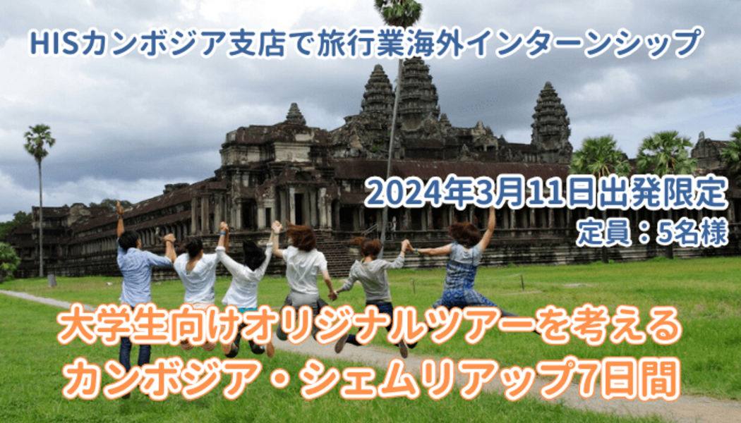 【インターン証明書付】HISカンボジア・シェムリアップ支店で海外短期インターンシップ。