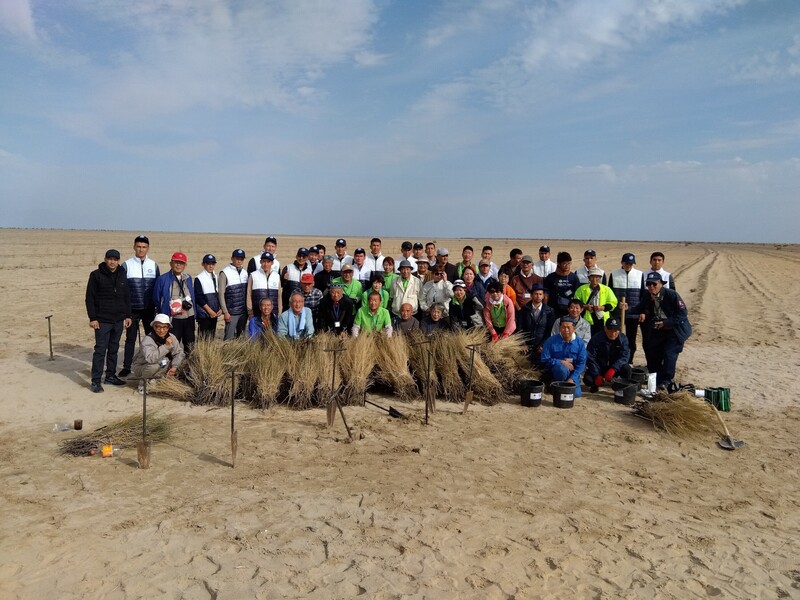 10月末にオイスカ会員30名がスタディーツアーに参加し、その現場を訪れ、沙漠に6000本の苗木を植えてきました。