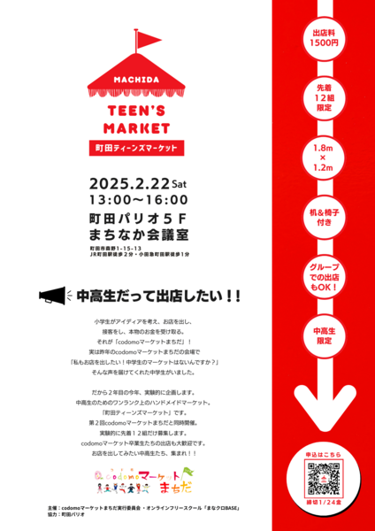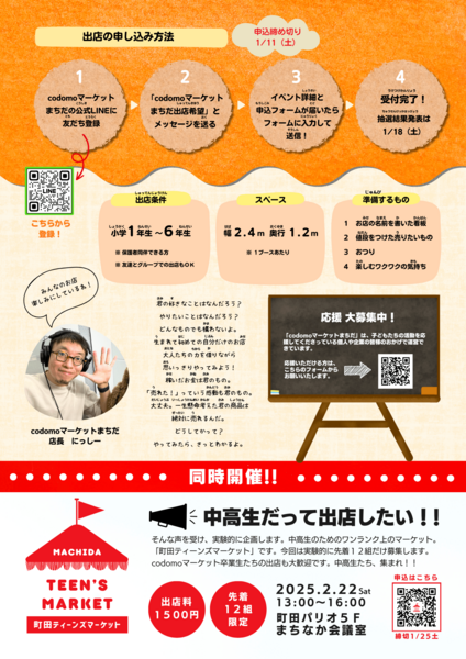 また、同時開催で中高生に向けた「町田ティーンズマーケット」を開催します。