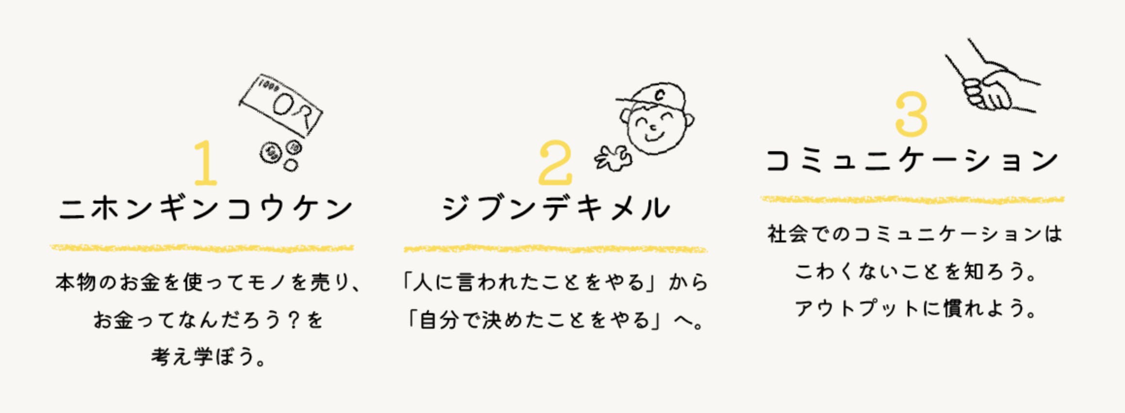 ・子どもたちが、「自分も社会の一員である」ことを、販売体験を通して感じること。