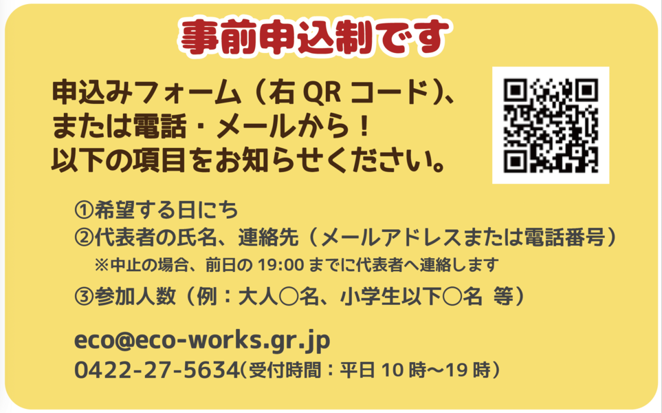 小学生以上(作業は中高学年向け)。小学生は保護者と一緒に参加してください。 |