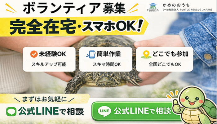 ※予約方法とボランティア用公式LINEは、かめのおうちHPの「ボランティア」ページに記載されています。
