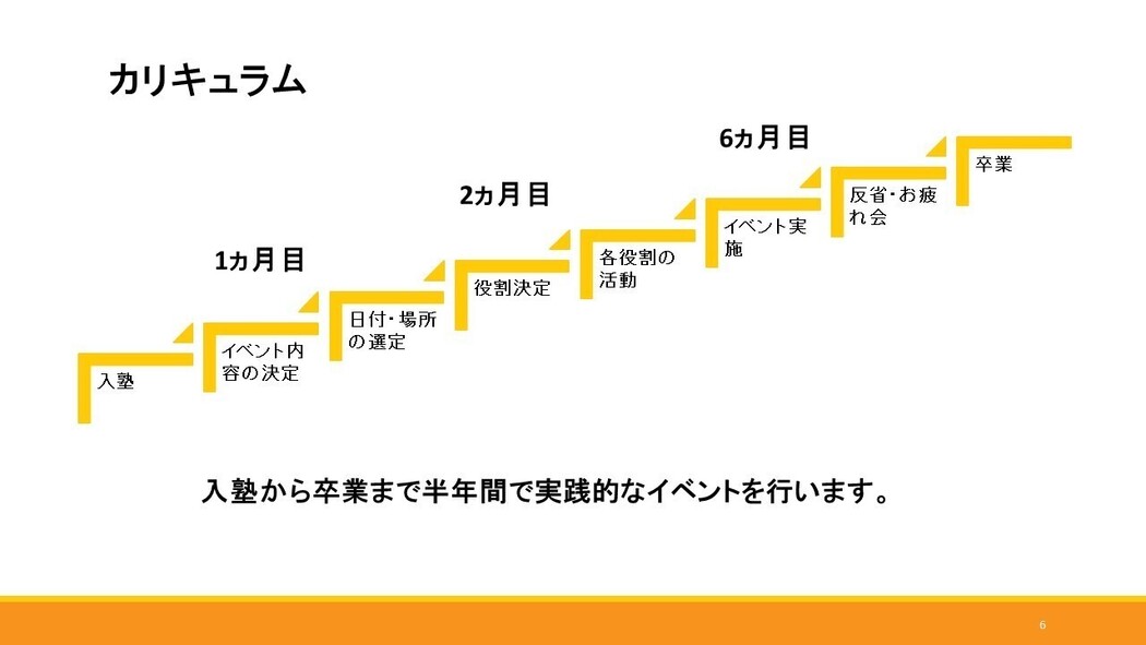 入塾から卒業まで6ヶ月間の実践的な塾です。