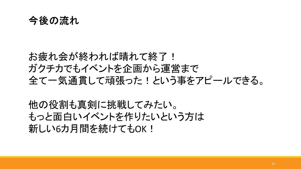 グループワークで自分の役割を果たしつつ、わからないことやできないことは仲間と協力できるので社会に出てからも困ることなく働けます!むしろイベントを作ったという実績や来場者数の実績があることで就活でもかなり有利に!