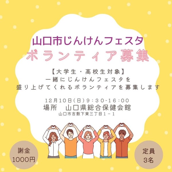 山口市じんけんフェスタイベントスタッフとして元気に活動してくれる方を募集します!