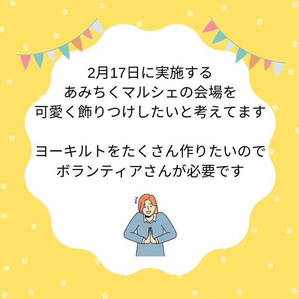 2024.2.17にあみちくマルシェを実施します。会場をデコるヨーヨーキルトが沢山必要です。
