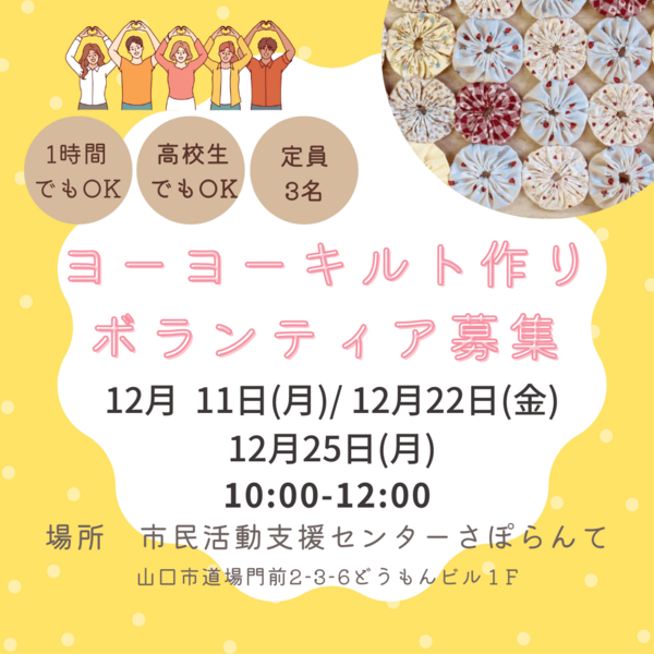 - ヨーヨーキルト作りボランティア募集(午前開催