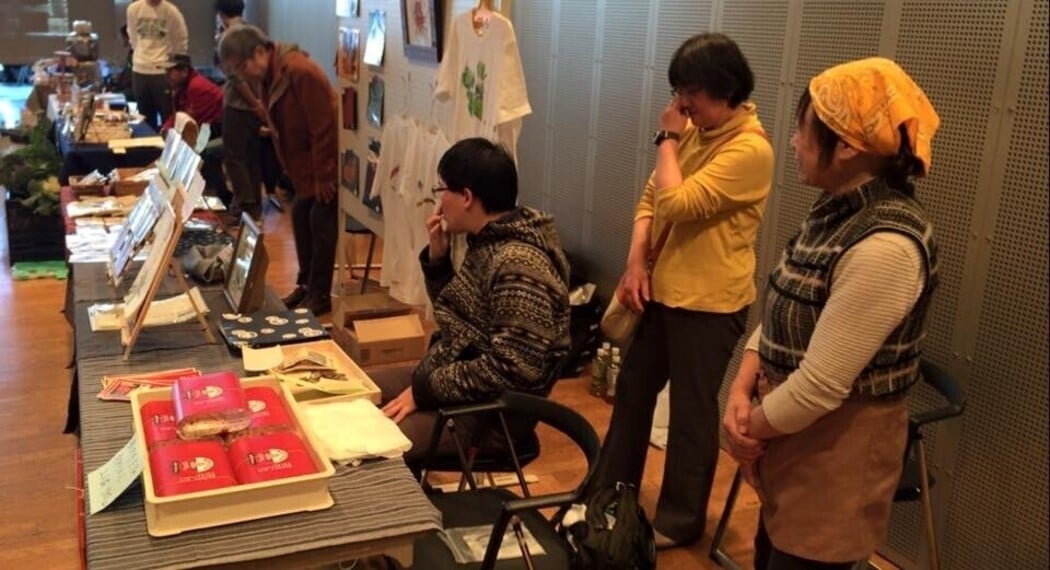南相馬市、就労継続支援B型、「自立研修所ビーンズ」さんにて、むげんの利用者4名、現地にて手打ちうどんの技術を披露すると共に交流を深める。