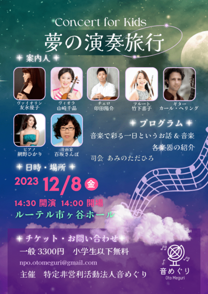都内小学生に向けて、楽しいクリスマスコンサートを行いました。