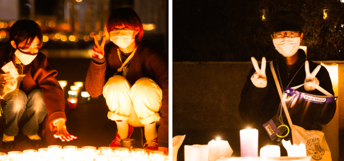 ◯ 点灯活動が無事に終わると、風で消えてしまったキャンドルを付け直したり