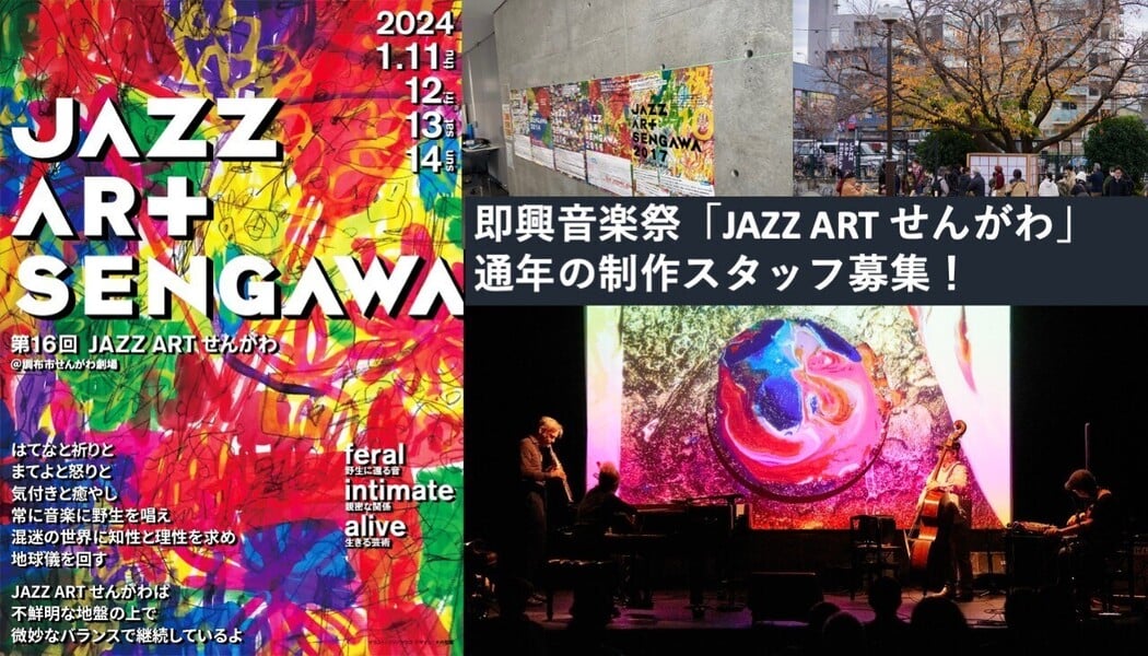 即興音楽・アート・詩・身体表現などを分野横断的に扱うフェスティバル、「JAZZ ART せんがわ」の制作ボランティア募集です。まずは1月の本番をお手伝いいただき、その後通年で制作を担っていただきます。