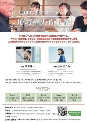 - 【都内から通える!地域活性化を学ぶ講座】地域共創プロジェクト 地域魅力向上塾