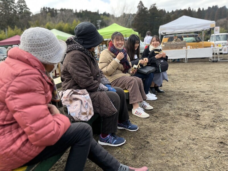 ↑里山市に来ていたおばあちゃんと魅力塾参加者が交流する様子。いい笑顔!