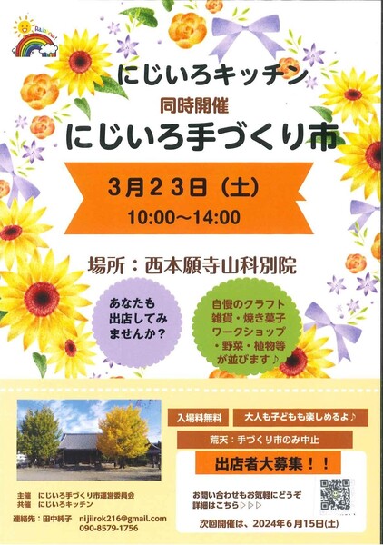 3月23日「子ども食堂にじいろキッチン」にて山科区社会福祉協議会が「クラフトコーナー(ミニプランターと押し花ステッカーづくり」を実施します。運営のお手伝いボランティアを募集しています♪