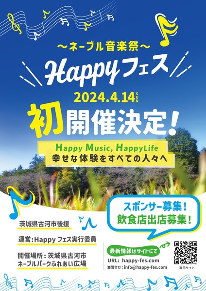 茨城県古河市で初開催される野外音楽フェス【HAPPYフェス】のボランティアスタッフを募集しています!