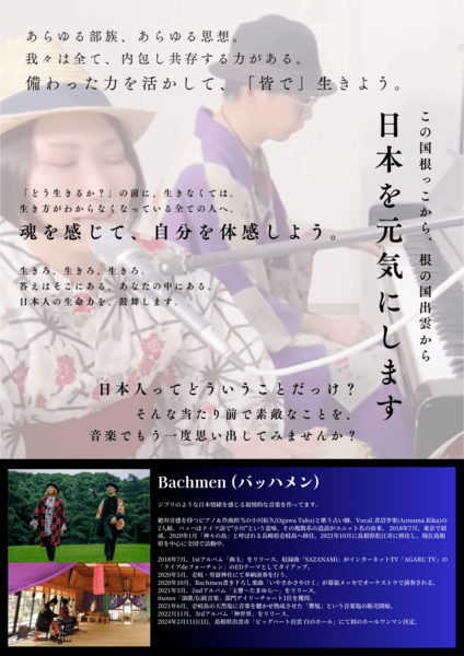 Bachmen (バッハメン)は、小川拓久と青沼李果の2人組で日本情緒溢れる音楽を作っています。