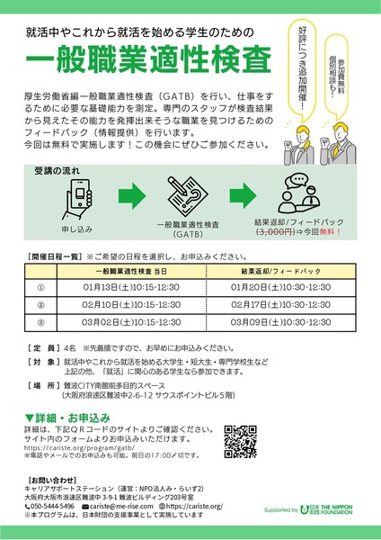 - 【近日開催】就活がうまくいかない学生のための「一般職業適性検査(GATB)」