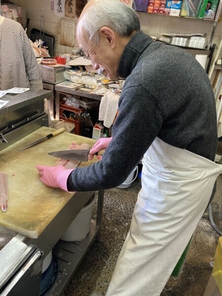 京都市上京区にある浅井鮮魚店さんで、良い魚の見分け方や切り方、魚屋さんのことや西陣の地域など色々教えてもらえます!魚を切ることもできます(当日の状況により変更となる場合があります)。
