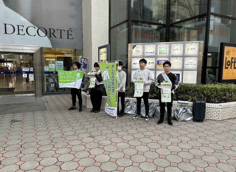 あしなが学生募金事務局は、日本とアフリカの親を亡くした子どもや親に障害がある子どもが進学するために必要な奨学金を街頭募金等で成り立たせている団体です