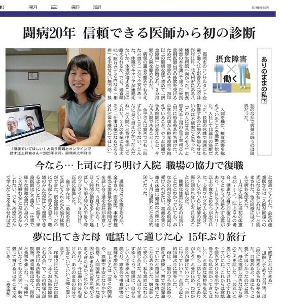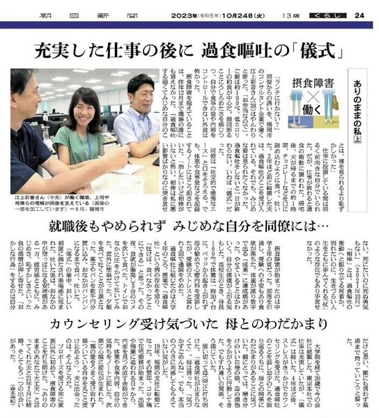 摂食障害からの回復に必要な助け合いを、当事者の目線で考えて、実践しています。