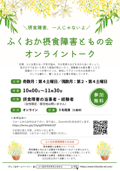 ※摂食障害の当事者の方には、まずは「オンライントーク」への参加をお勧めいたします。
