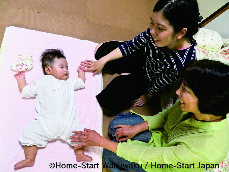 ホームスタートは50年前にイギリスで生まれ、22か国に広がった家庭訪問型の子育て支援の仕組み。地域の子育て経験者が、週に1回2時間程度、数回にわたって産前や乳幼児のいる家庭を訪問し、傾聴と協働をするボランティア活動。利用は無料。家事代行や託児は請け負わないが、母親などと一緒に話をしながら家事や育児、外出をし、親自身の心の安定と子育て意欲やスキルの向上につながる効果が実証されている。日本ではNPO法人ホームスタート・ジャパン(HSJ)がネットワークの中心になり、各地域の現場では地元のNPO法人、社会福祉法人、幼稚園・保育園、児童養護施設などが運営母体となり、家庭を訪問するボランティアを募集・養成し、ホームスタートの手法で家庭訪問を行う。充実した研修や詳細なマニュアルにより、訪問の質の担保がされているのが大きな特徴。