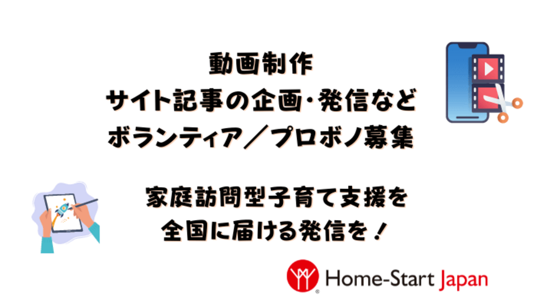 - ・ホームスタート・ジャパンの公式サイトやSNSで発信する記事の企画・制作・発信をお願いします。