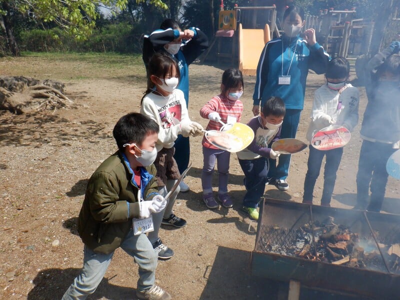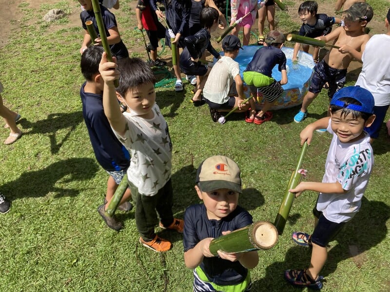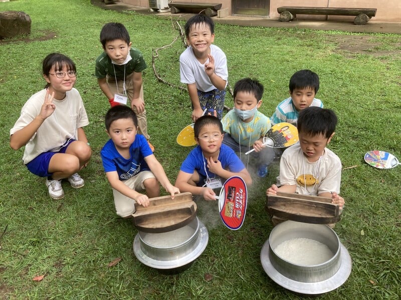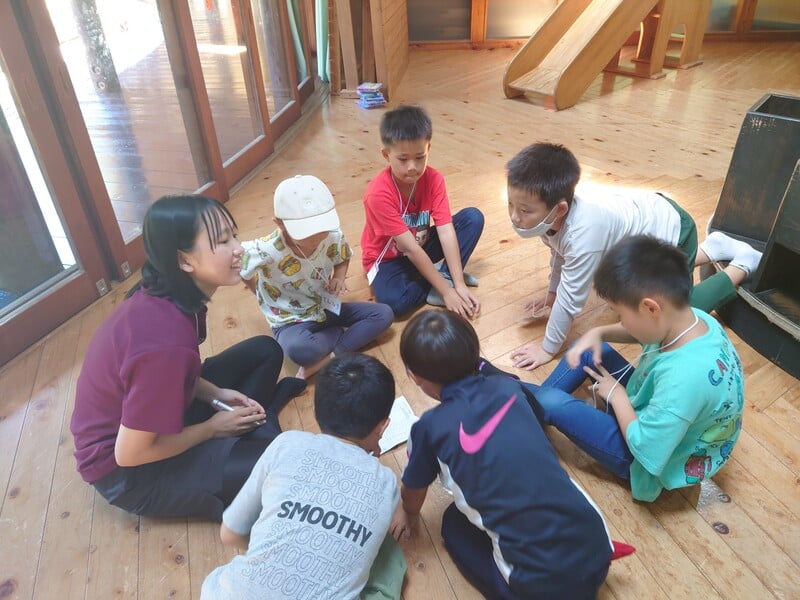 1~3年生の参加者です。森に囲まれゆっくりとした時間の流れ、和やかな雰囲気で
