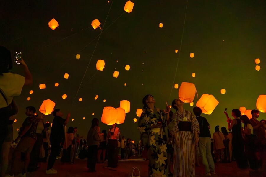 亀岡バルーンフェスティバルにて、今年は幻想的な打ち上げランタンを実施♪