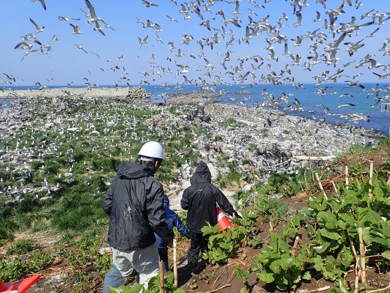 日本最北端のカモメ繁殖地で野生動物の調査研究活動をサポートする
