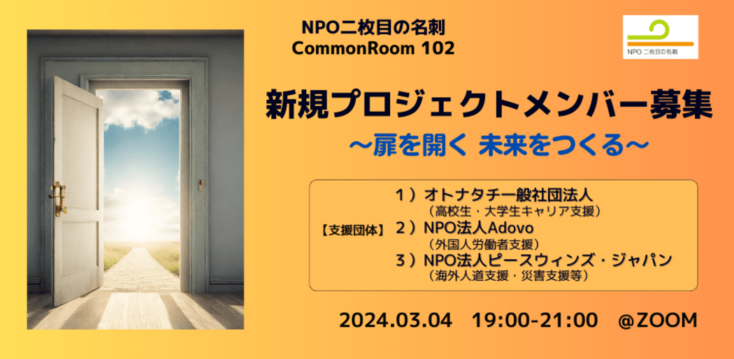 - 新規プロジェクトメンバー募集 ~扉を開く、未来をつくる~