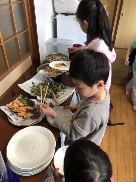 お昼ごはんもみんなでわいわい楽しく食べます。