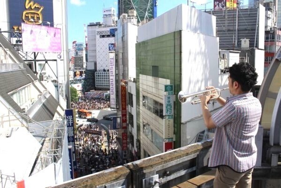 ビルの屋上から唐突にラピュタのパズーのラッパを吹き鳴らしたり、