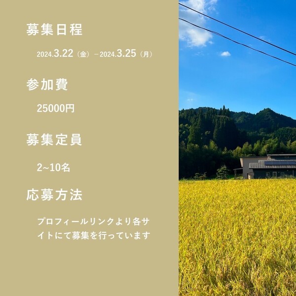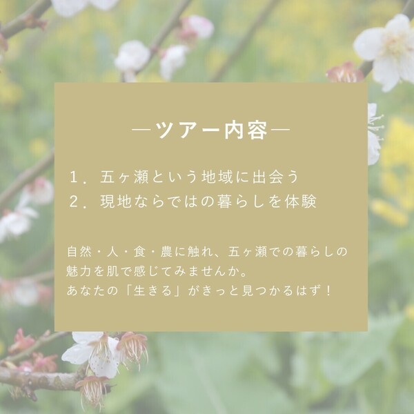 気軽に参加できる、3泊4日の暮らし体験ツアーです。