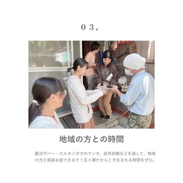 豊かな自然や食、地域の人たちと触れ、心に残る時間を過ごしましょう!
