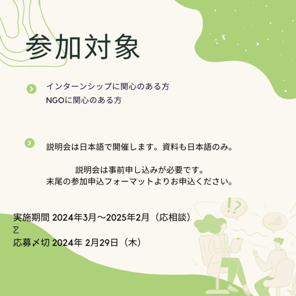 今年度活躍してくれている2人のインターンの活動期間があと少しとなりました。そこで、新たに一緒に活動してくださるインターンを募集します。募集にあたりインターン説明会を開催します。