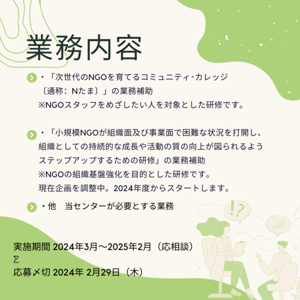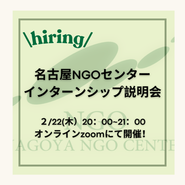 この募集の受入法人「名古屋NGOセンター」をフォローして、