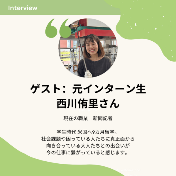 また、社会の様々な問題に触れ、真剣に議論した経験や、インターン期間中に、数えきれないほどの人と出会い、様々な生き方や考え方に触れた経験は、自分を見つめなおし、将来を考えるうえで大いに役立ちました。