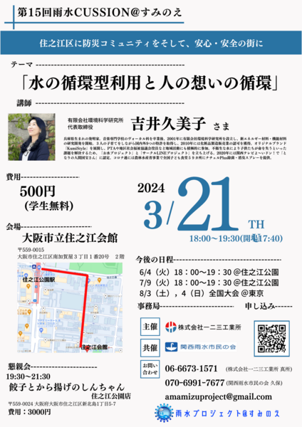 - 第15回雨水Cussion@すみのえ 水と人の想いの循環について