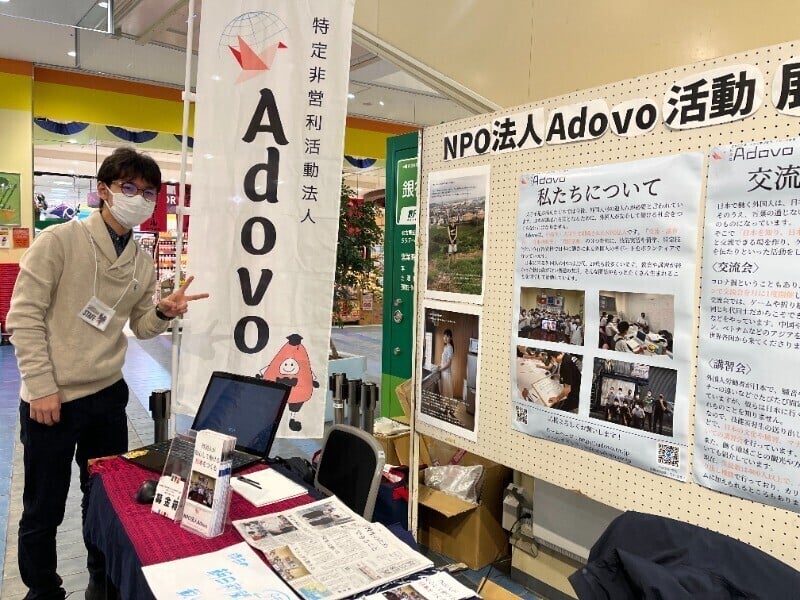NPO法人Adovoは高校生・大学生が中心となって、日本で働く若い外国人のサポート活動を行う団体です。全国に3つの支部があり、120名のメンバーが活動しています。
