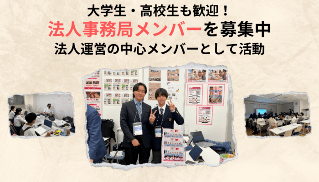 現在、当団体では事務局メンバーが不足しており、新たに事務局に幹部として関わるメンバーを募集しています。