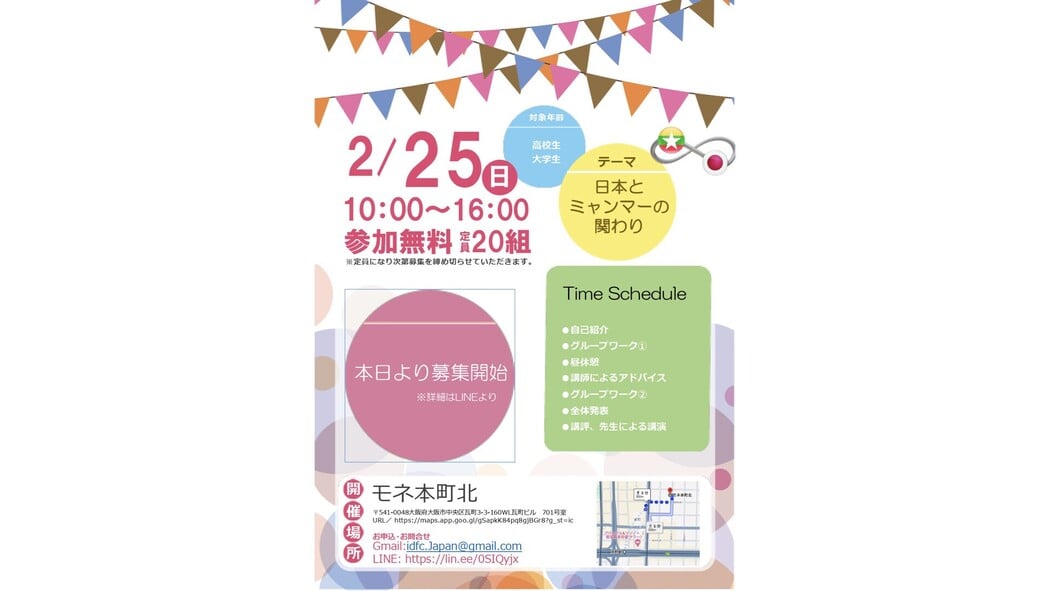 この募集の受入団体「IDFC日本ミャンマー学生会議」をフォローして、