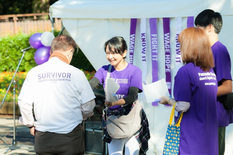 すい臓がんを象徴する色は「パープル(紫)」。今回行うウォーク&ランイベントは「パープルストライド」という名前です。「パープル(紫)+ストライド(ゆっくり歩く)」という意味を表すこのイベントは、すい臓がんの患者さん、家族、遺族だけでなく、「すい臓がんをあまり知らない一般の方」「学生の方」「医療関係者」など、たくさんの方に参加していただき、病気などのさまざまな情報を知っていただければと思っています。