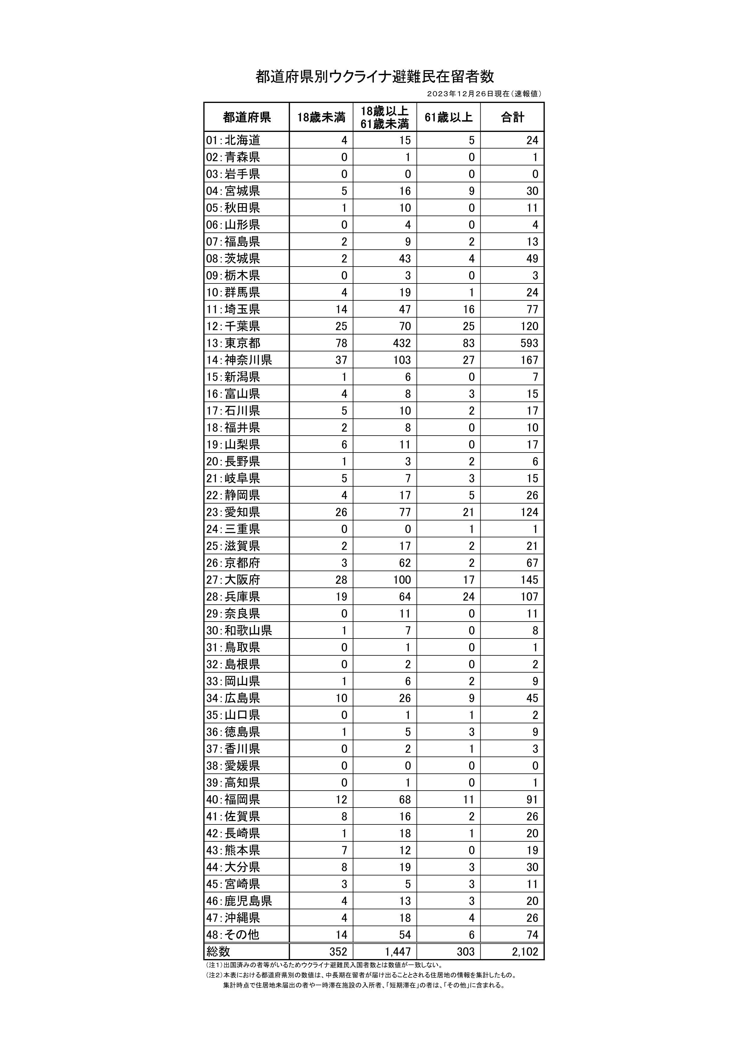 日本に在住しているウクライナ避難民の総数 2,102名。