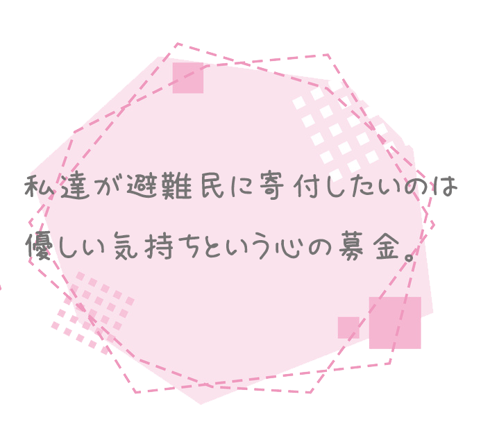 リアルで困っている避難民へ勇気や希望、そして人としてのいたわる優しさで接してもらいたいからです。