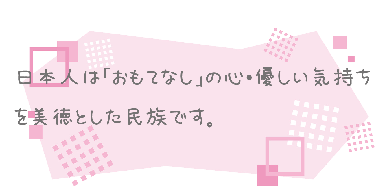 私たち日本人は「おもてなし」の心を持った民族です。またそれを美徳とした人種です。