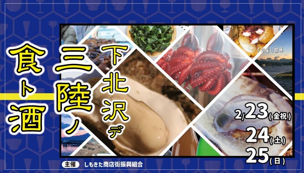 02/23(金祝)〜02/25(日)の3日間に下北沢で開催される岩手・宮城沿岸地の物産&🍴食&酒🍶イベントのボランティアスタッフ募集。ランチ&打上げ付🍻